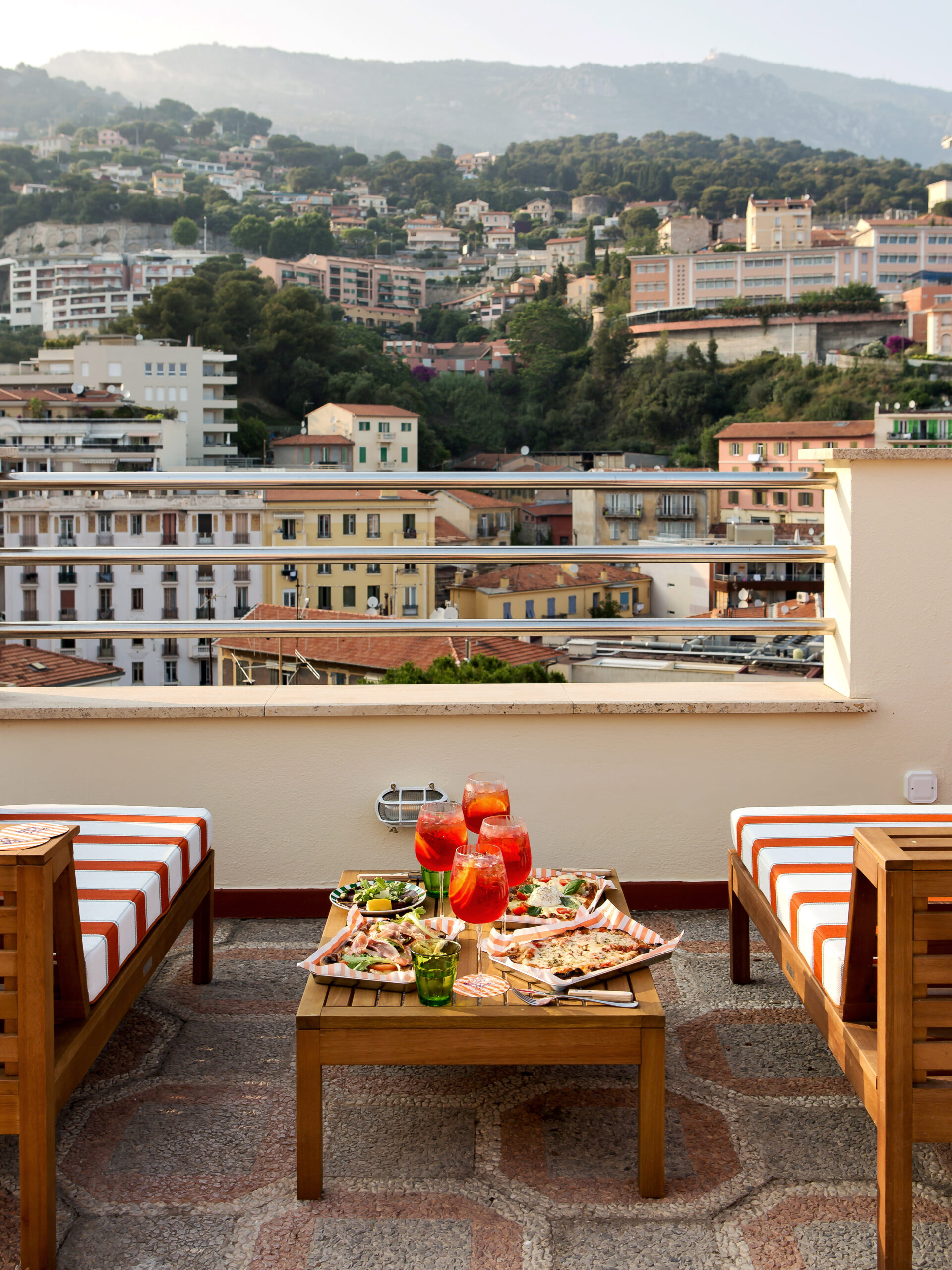 Sur le rooftop, nous proposons une table italienne chaleureuse. On y partage une pinsa en regardant Monaco d’en haut. L’endroit est ouvert au printemps et en été.